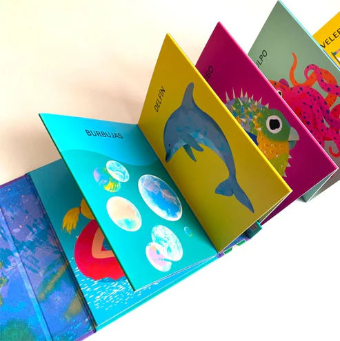 Este hermoso libro acordeón presenta a los más pequeños distintos animales y objetos relacionados con el mundo marino. Ponte una máscara de buceo, abre bien los ojos y observa...