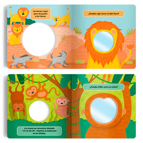 Sumérgete en una experiencia de lectura interactiva donde tu pequeño podrá explorar y comprender diferentes emociones al ver su propio reflejo convertirse en parte de la historia. "¿Puedes rugir como un león? ¿O imitar a un mono?" Invita tu pequeño a que se vea en el espejo y que haga divertidas caras con este increíble libro de animales que ayuda a los niños a comprender y expresar sus sentimientos. La combinación de ilustraciones coloridas y el espejo interactivo lo convierte en un libro esencial en la biblioteca de tu pequeño.