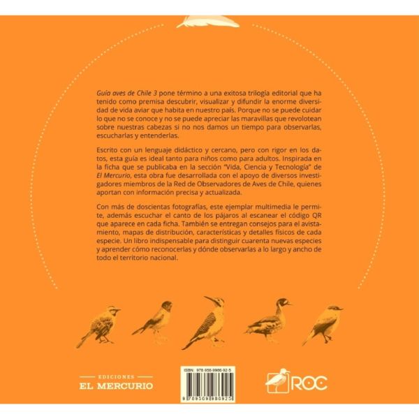 Escrito con un lenguaje didáctico y cercano, pero con rigor en los datos, esta guía es ideal tanto para niños como para adultos. Esta obra, con más de doscientas fotografías, fue desarrollada con el apoyo de diversos investigadores miembros de la Red de Observadores de Aves de Chile, quienes aportan con información precisa y actualizada. Este libro le permite además, escuchar el canto de los pájaros al escanear el código QR.