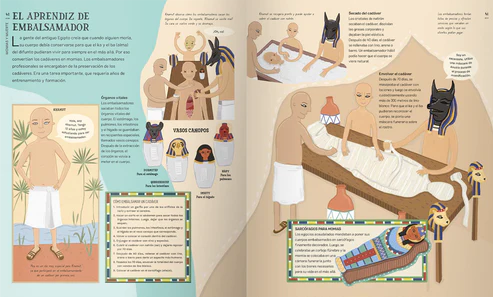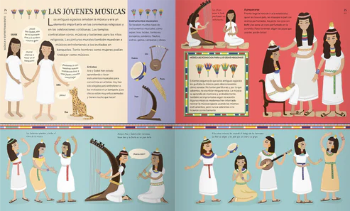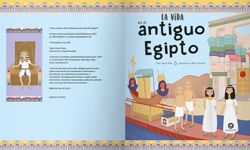 En este libro descubrirás cómo vivía un grupo de jóvenes egipcios: a qué clase social pertenecían, qué estudiaban, qué ocupaciones tenían, cómo vestían y la música que escuchaban. Conocerás a Kawab, quien se convirtió en faraón a los 12 años; a los hermanos Woser y Kia, dedicados a la agricultura; a Peshet, una joven de 17 años que se preparaba para ser doctora; y a Khamut, quien aprendía el arte del embalsamamiento.