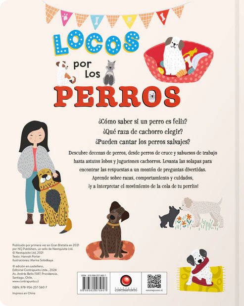 Este libro, con hermosas ilustraciones, ofrecen una variedad de preguntas y respuestas sobre los perros. Cada título incluye 60 solapas que permitirán a niños y niñas descubrir, entre otras cosas, cuáles son las razas más populares, cómo entender sus comportamientos y conocer los cuidados que necesitan.