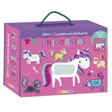 LIBRO + 5 PUZLES CON TEXTURA UNICORNIOS