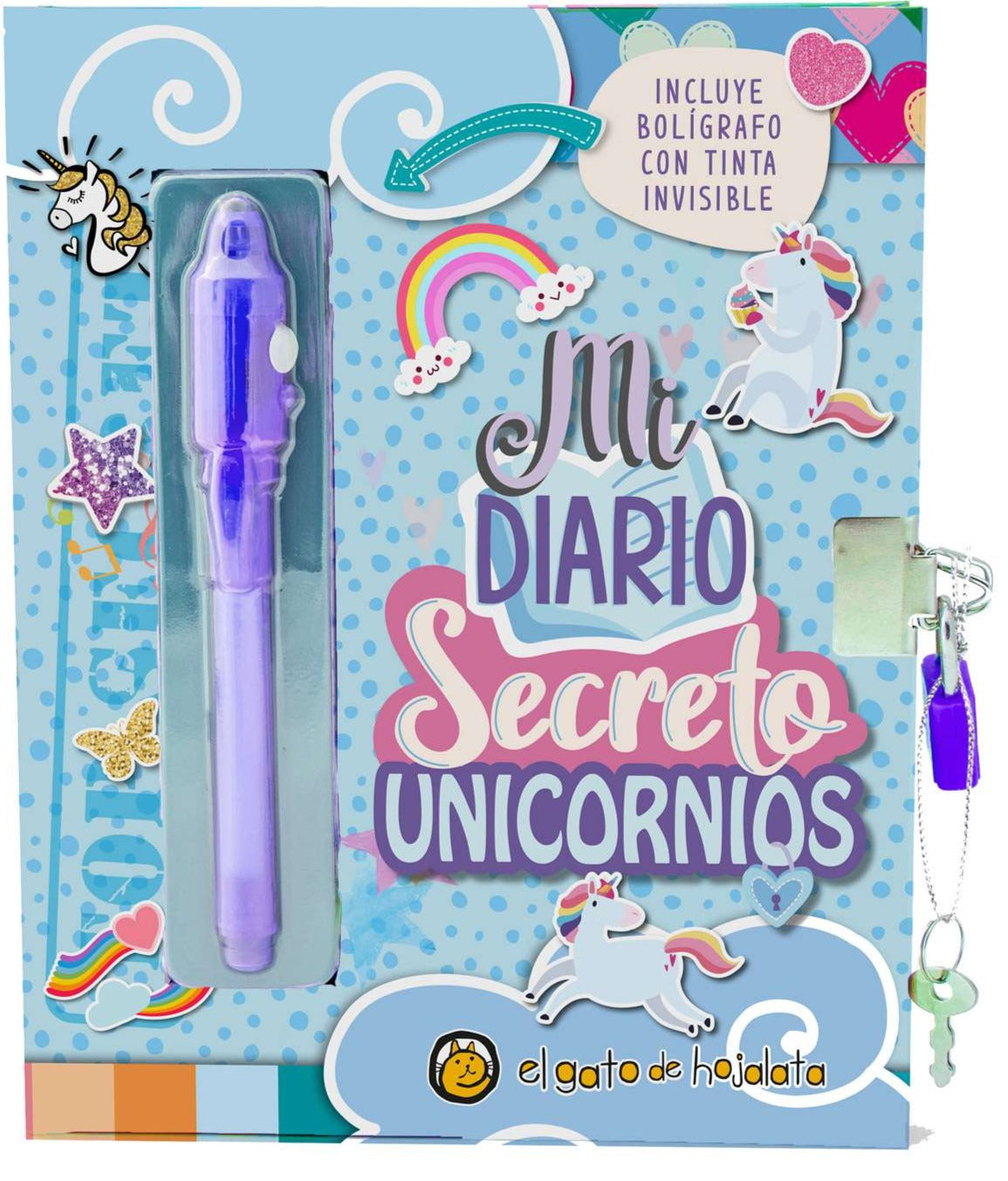 Sumérgete en el mágico mundo de los unicornios y otros encantadores seres de fantasía mientras recorres las páginas de este novedoso y divertido diario secreto. ¿Eres fan de los unicornios? ¡Claro que sí! Aquí podrás descubrir el horóscopo de unicornios, diseñar un look arcoíris y conocer a un unicornio especial: ¡Aurora Boreal! Encuentra propuestas de actividades para explorar tu creatividad. También puedes visitar el bosque encantado, pedir deseos al hada madrina e ¡incluso preparar tu propia pócima mágica! Cuando quieras escribir algo ultra secreto, utiliza el extremo de tinta invisible de tu bolígrafo y el mensaje se revelará… ¡con luz ultravioleta! ¡Bienvenida!