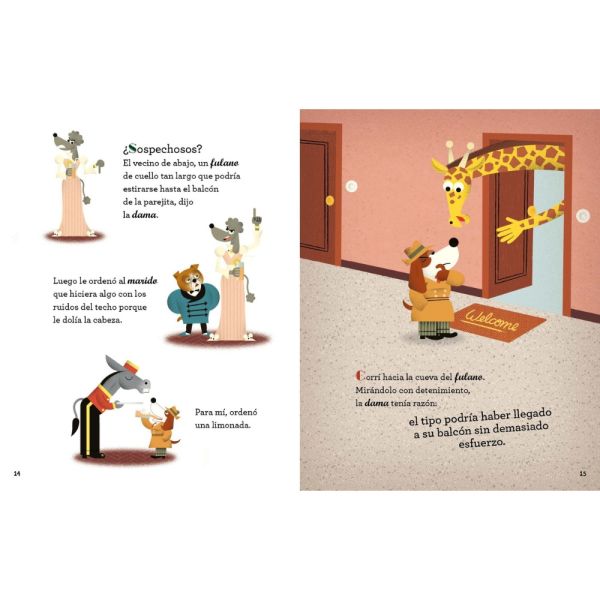 Perri es un detective muy astuto y siempre está en busca de un nuevo caso por resolver. Esta vez, sus clientes son una parejita con todo el pedigree. Él debe investigar la desaparición de la colección de collares de la dama. Alguien los robó. Y sospechan del vecino de abajo. Un fulano de cuello muy largo… ¿Cómo hará Perri para resolver este misterio?
