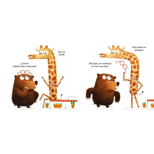 Oso ha perdido sus anteojos. Los debe de haber dejado en la casa de su amiga la jirafa, por lo que decide ir a buscarlos. En el camino Oso encuentra animales que nunca había visto.