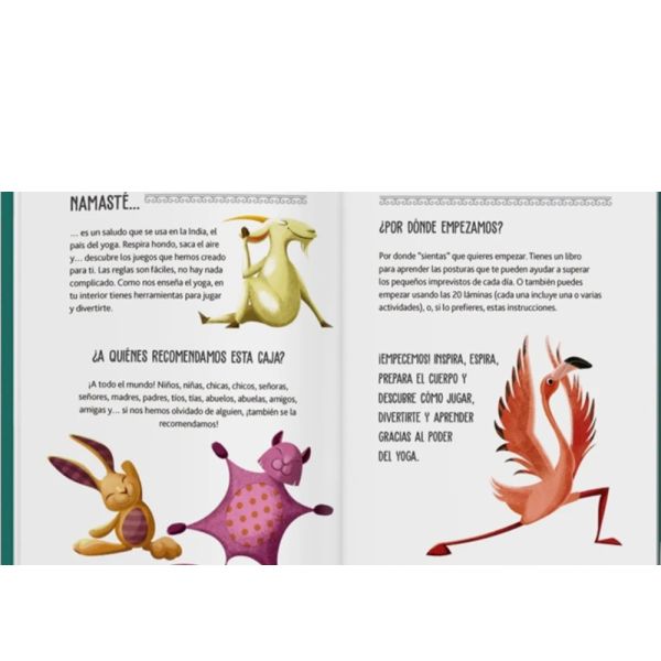 Incluye un libro con una historia basada en posturas de yoga y 20 tableros para diversas actividades: un juego de memoria con posiciones de yoga, 16 cartas para ordenar y crear la secuencia correcta de asanas para dormir, y mucho más. También viene con un manual de instrucciones que explica cada actividad. ¡Todo en una caja fácil de llevar de viaje!