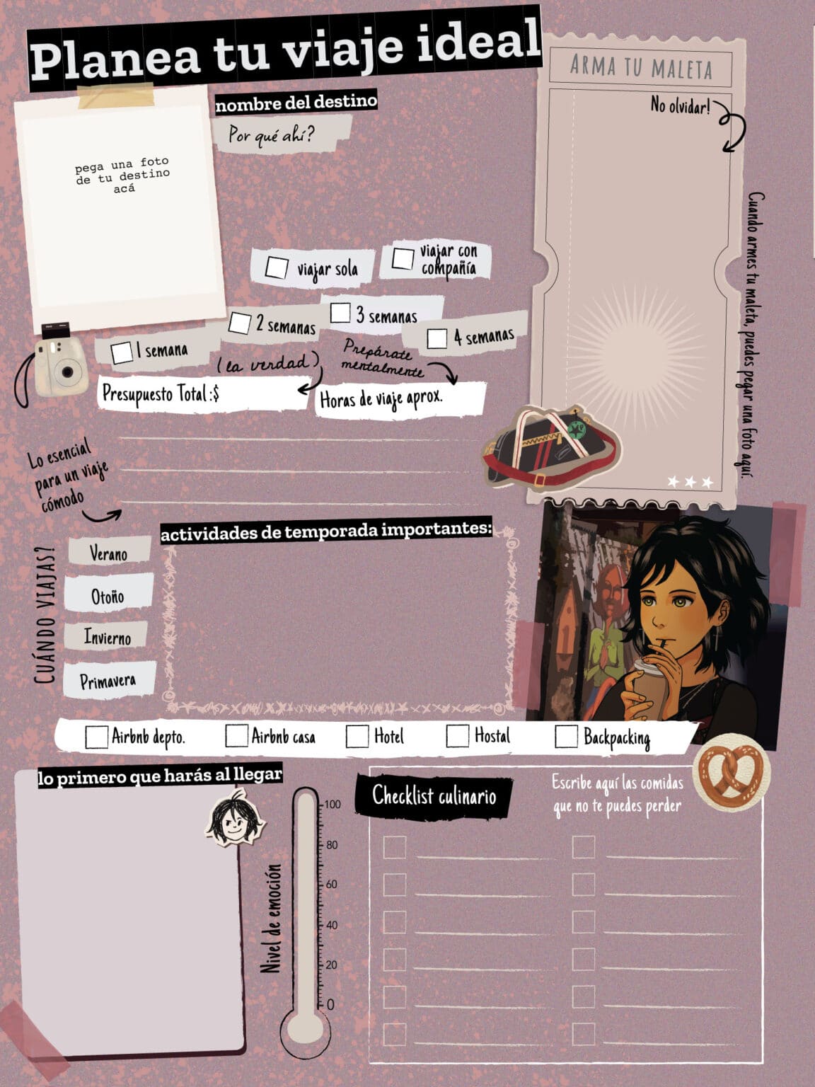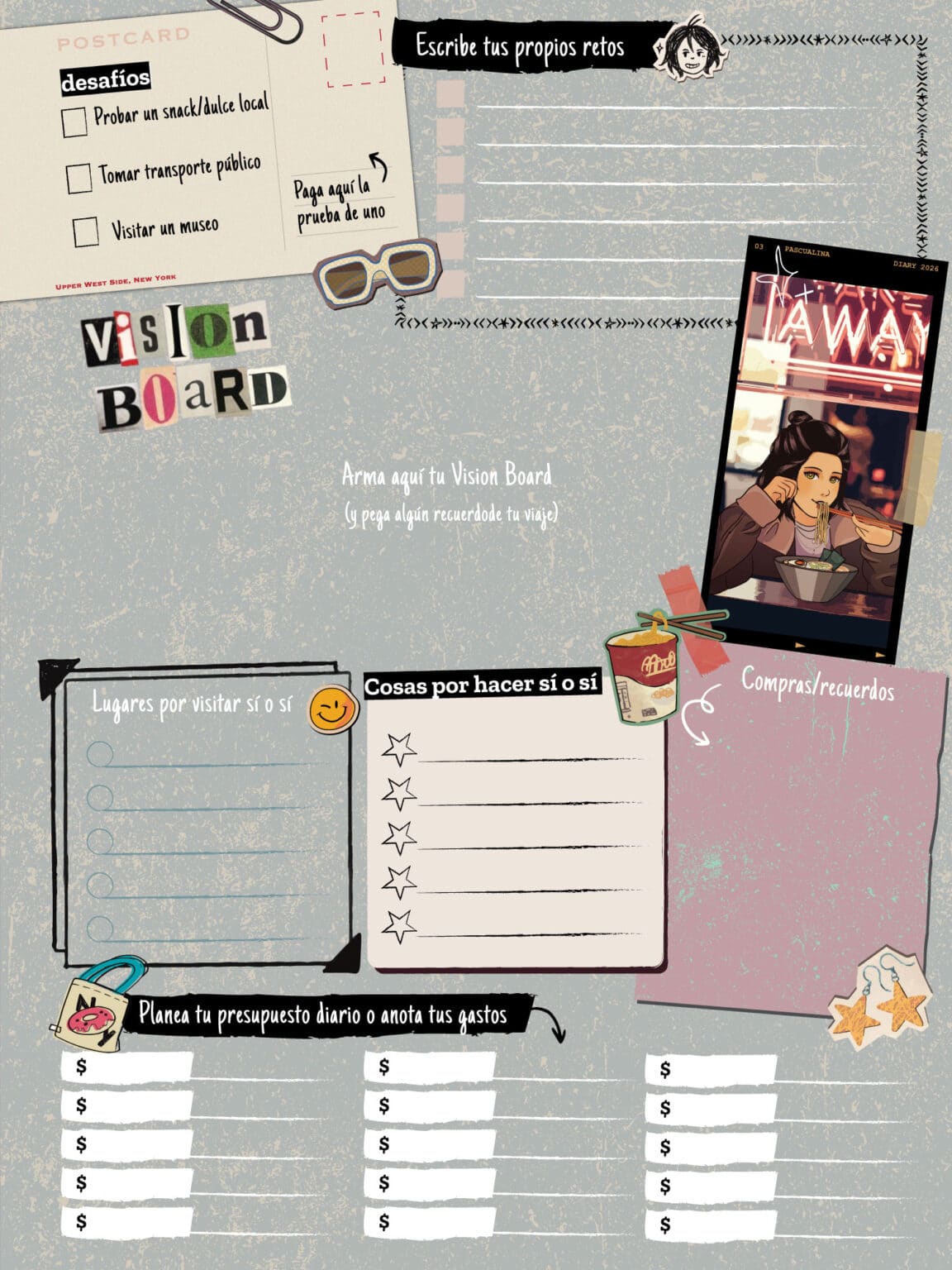 Este año mi agenda viene con un giro distinto: está inspirada por los scrapbooks y los junk journals, con recortes, dibujos y un look mucho más libre. Quería que esta colección transmitiera esa sensación de caos creativo, sin estructuras rígidas.