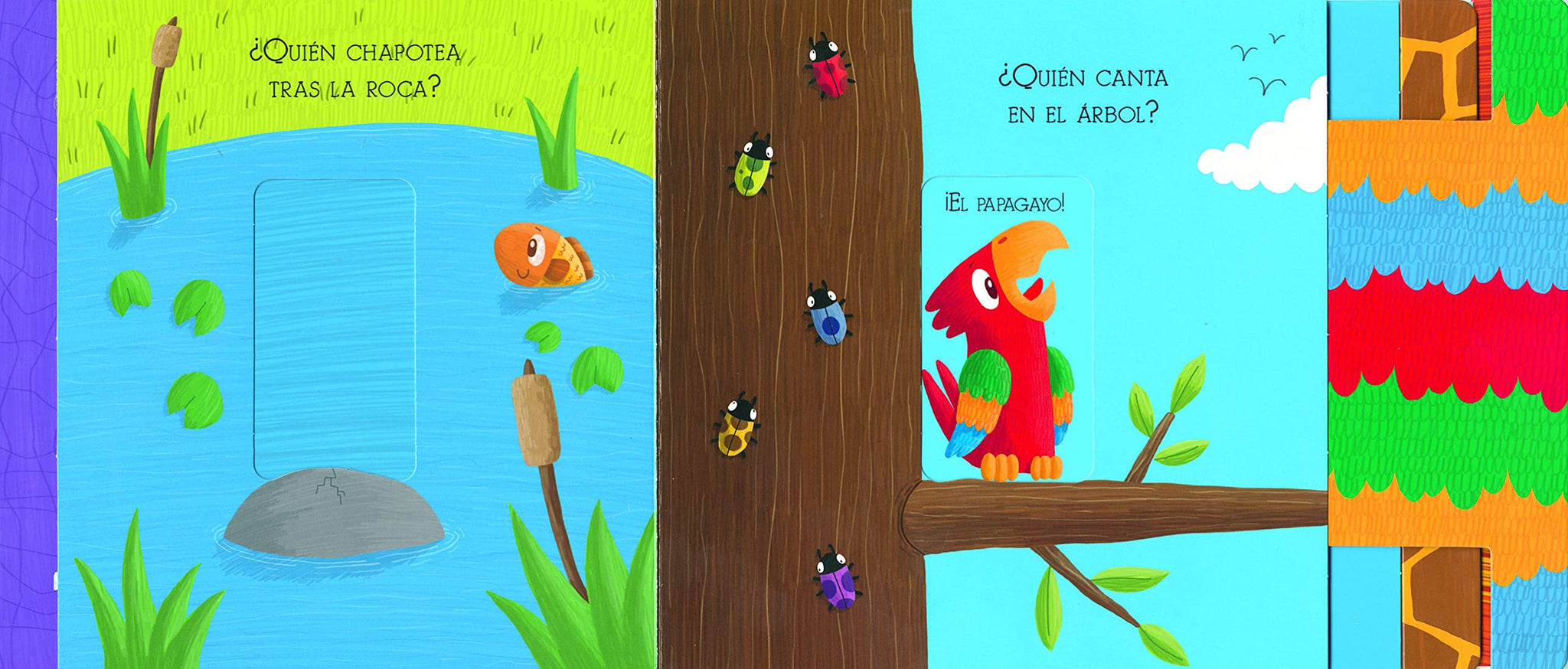 Tira de las pestañas y encuentra los nueve animales que viven en esta selva. Un divertido libro de cartón para aprender jugando.